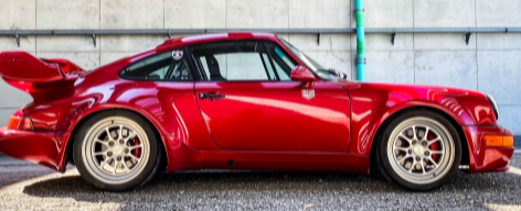 随后,该车被涂上了华丽的激光红色金属色,并由一组964型玻璃纤维保险杠和侧裙,一个GT2型尾翼和黑色大灯包围。