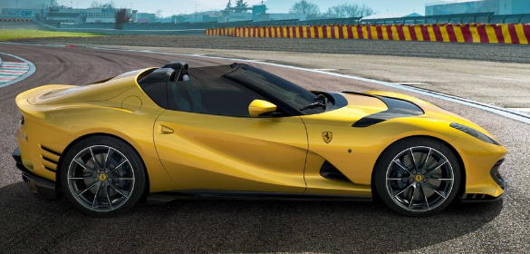 812 Competizione A 有一些不同之处,因为它是 targa 模型。该车的后部采用了飞扶壁概念,并且有防倾杆有助于进一步区分敞篷车型与双门轿跑车。