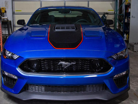 在2021野马马赫1采用了黑色遮光罩条纹,但摇床罩不存在。由于前保险杠经过重新设计以提供足够的冷却,因此不需要发动机罩振动器。更不用说直接安装在振动台通常安装位置的支柱。