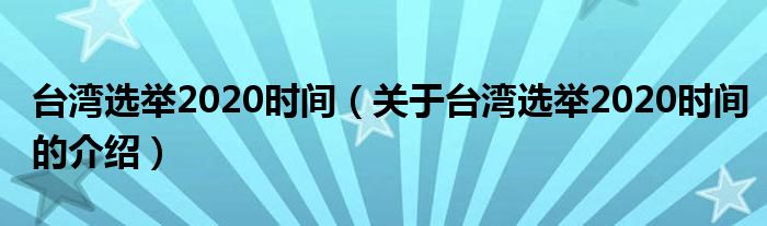 大家好,小乐来为大家解答以上的问题。台湾选举2020时间,关于台湾选举2020时间的介绍很多人还不知道,现在让我们一起来看看吧!