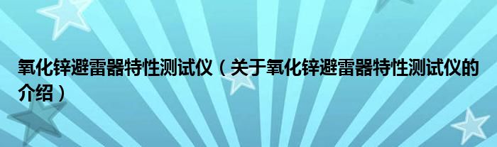 导读大家好,小乐来为大家解答以上的问题。氧化锌避雷器特性测试仪,关于氧化锌避雷器特性测试仪的介绍很多人还不知道,现在让我们一起来看看吧