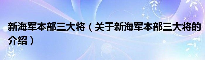 大家好,小乐来为大家解答以上的问题。新海军本部三大将,关于新海军本部三大将的介绍很多人还不知道,现在让我们一起来看看吧!