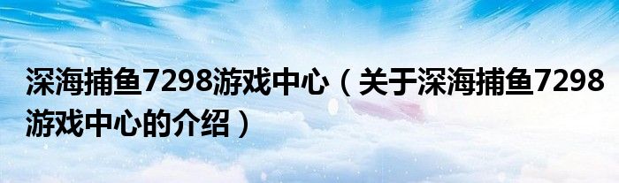 导读大家好,小乐来为大家解答以上的问题。深海捕鱼7298游戏中心,关于深海捕鱼7298游戏中心的介绍很多人还不知道,现在让我们一起来看看吧!1