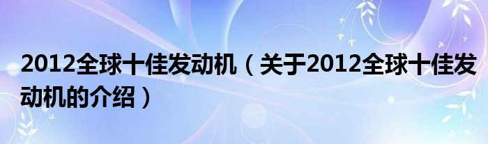 大家好,小乐来为大家解答以上的问题。2012全球十佳发动机,关于2012全球十佳发动机的介绍很多人还不知道,现在让我们一起来看看吧!