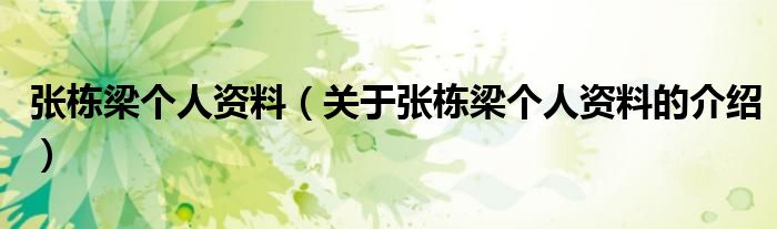大家好,小乐来为大家解答以上的问题。张栋梁个人资料,关于张栋梁个人资料的介绍很多人还不知道,现在让我们一起来看看吧!