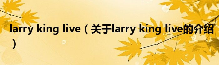 大家好,小乐来为大家解答以上的问题。larry king live,关于larry king live的介绍很多人还不知道,现在让我们一起来看看吧!
