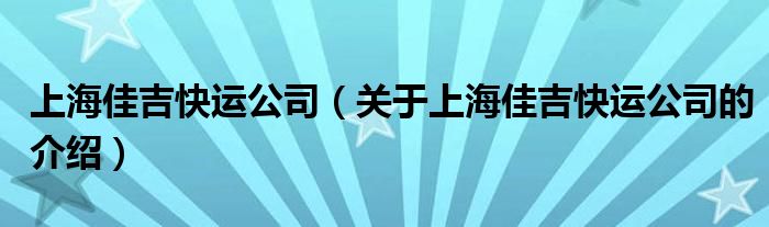 大家好,小乐来为大家解答以上的问题。上海佳吉快运公司,关于上海佳吉快运公司的介绍很多人还不知道,现在让我们一起来看看吧!