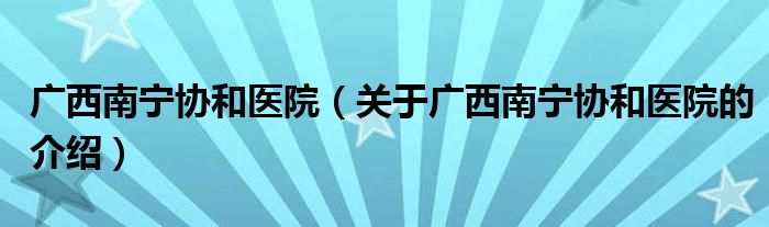 大家好,小乐来为大家解答以上的问题。广西南宁协和医院,关于广西南宁协和医院的介绍很多人还不知道,现在让我们一起来看看吧!