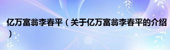 大家好,小乐来为大家解答以上的问题。亿万富翁李春平,关于亿万富翁李春平的介绍很多人还不知道,现在让我们一起来看看吧!