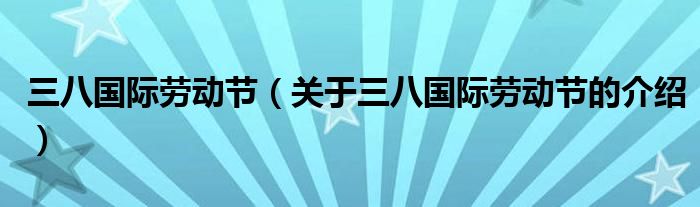 大家好,小乐来为大家解答以上的问题。三八国际劳动节,关于三八国际劳动节的介绍很多人还不知道,现在让我们一起来看看吧!