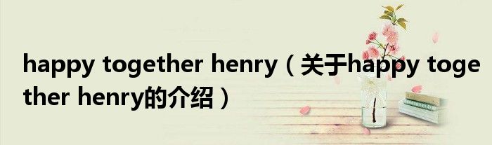 导读 大家好,小乐来为大家解答以上的问题。happy together henry,关于happy together henry的介绍很多人还不知道,现在让我们一起来看看吧