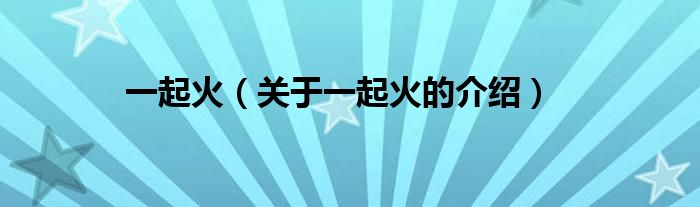 大家好,小乐来为大家解答以上的问题。一起火,关于一起火的介绍很多人还不知道,现在让我们一起来看看吧!