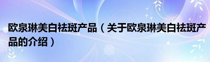 大家好,小乐来为大家解答以上的问题。欧泉琳美白祛斑产品,关于欧泉琳美白祛斑产品的介绍很多人还不知道,现在让我们一起来看看吧!
