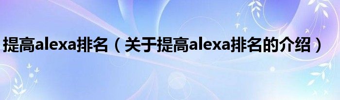 导读 大家好,小乐来为大家解答以上的问题。提高alexa排名,关于提高alexa排名的介绍很多人还不知道,现在让我们一起来看看吧!1、Alexa(www al