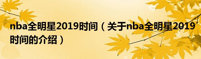 大家好,小乐来为大家解答以上的问题。nba全明星2019时间,关于nba全明星2019时间的介绍很多人还不知道,现在让我们一起来看看吧!