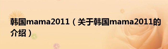 大家好,小乐来为大家解答以上的问题。韩国mama2011,关于韩国mama2011的介绍很多人还不知道,现在让我们一起来看看吧!
