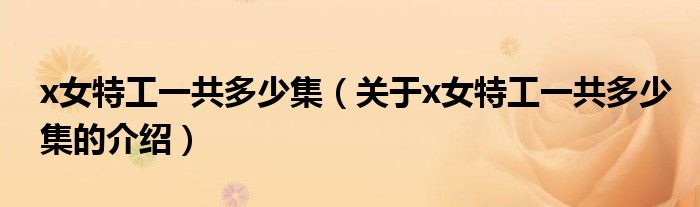 大家好,小乐来为大家解答以上的问题。x女特工一共多少集,关于x女特工一共多少集的介绍很多人还不知道,现在让我们一起来看看吧!