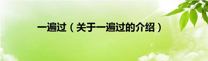 大家好,小乐来为大家解答以上的问题。一遍过,关于一遍过的介绍很多人还不知道,现在让我们一起来看看吧!