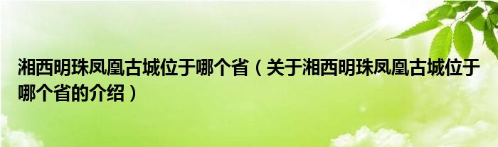 大家好,小乐来为大家解答以上的问题。湘西明珠凤凰古城位于哪个省,关于湘西明珠凤凰古城位于哪个省的介绍很多人还不知道,现在让我们一起来看看吧!