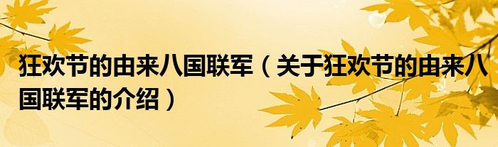 大家好,小乐来为大家解答以上的问题。狂欢节的由来八国联军,关于狂欢节的由来八国联军的介绍很多人还不知道,现在让我们一起来看看吧!