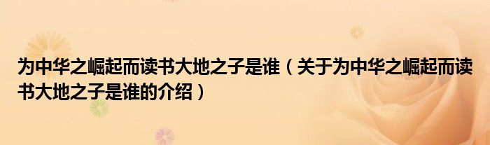 大家好,小乐来为大家解答以上的问题。为中华之崛起而读书大地之子是谁,关于为中华之崛起而读书大地之子是谁的介绍很多人还不知道,现在让我们一起来看看吧!