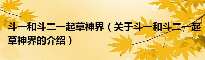 大家好,小乐来为大家解答以上的问题。斗一和斗二一起草神界,关于斗一和斗二一起草神界的介绍很多人还不知道,现在让我们一起来看看吧!