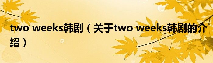 大家好,小乐来为大家解答以上的问题。two weeks韩剧,关于two weeks韩剧的介绍很多人还不知道,现在让我们一起来看看吧!