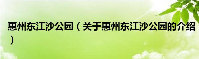 大家好,小乐来为大家解答以上的问题。惠州东江沙公园,关于惠州东江沙公园的介绍很多人还不知道,现在让我们一起来看看吧!