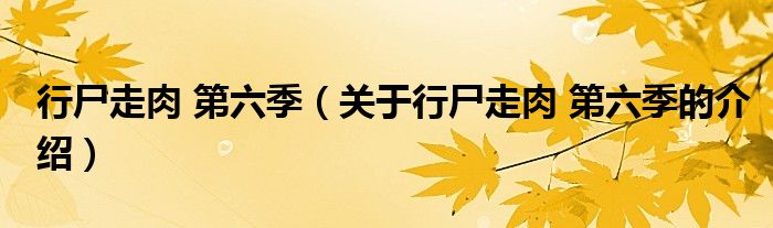 大家好,小乐来为大家解答以上的问题。行尸走肉 第六季,关于行尸走肉 第六季的介绍很多人还不知道,现在让我们一起来看看吧!