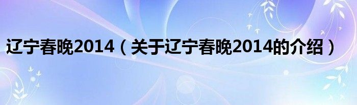 大家好,小乐来为大家解答以上的问题。辽宁春晚2014,关于辽宁春晚2014的介绍很多人还不知道,现在让我们一起来看看吧!