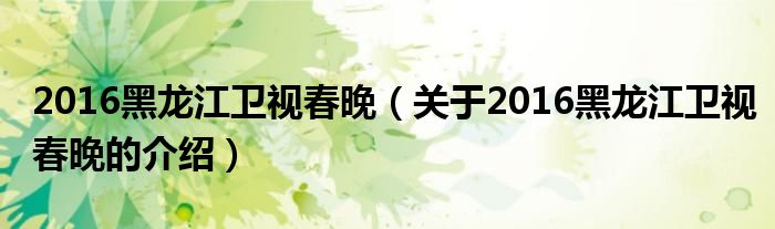 大家好,小乐来为大家解答以上的问题。2016黑龙江卫视春晚,关于2016黑龙江卫视春晚的介绍很多人还不知道,现在让我们一起来看看吧!