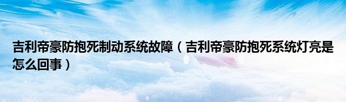 大家好,小太来为大家解答以上的问题吉利帝豪防抱死制动系统故障,吉利帝豪防抱死系统灯亮是怎么回事这个很多人还不知道,现在让我们一起来看看吧!