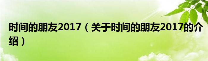 大家好,小乐来为大家解答以上的问题。时间的朋友2017,关于时间的朋友2017的介绍很多人还不知道,现在让我们一起来看看吧!