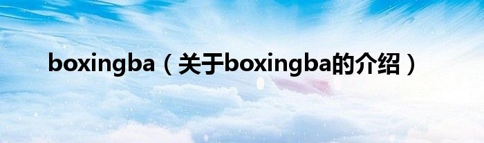大家好,小乐来为大家解答以上的问题。boxingba,关于boxingba的介绍很多人还不知道,现在让我们一起来看看吧!