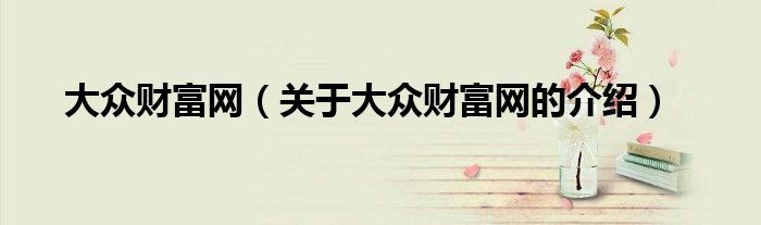 导读大家好,小乐来为大家解答以上的问题。大众财富网,关于大众财富网的介绍很多人还不知道,现在让我们一起来看看吧!1、大众财富网是中国领