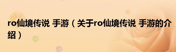 导读 大家好,小乐来为大家解答以上的问题。ro仙境传说 手游,关于ro仙境传说 手游的介绍很多人还不知道,现在让我们一起来看看吧!1、《仙境