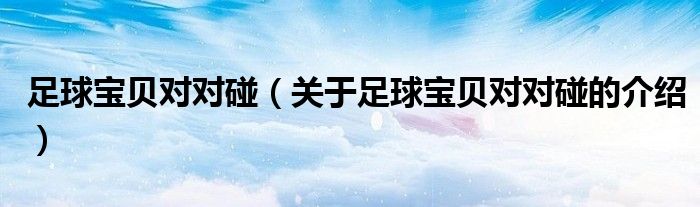 大家好,小乐来为大家解答以上的问题。足球宝贝对对碰,关于足球宝贝对对碰的介绍很多人还不知道,现在让我们一起来看看吧!