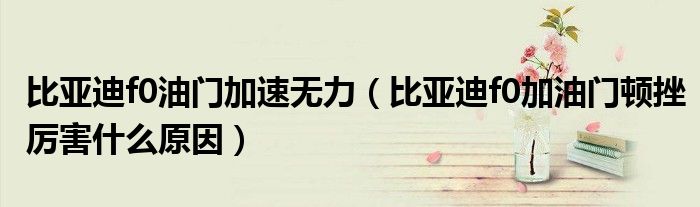 大家好,小太来为大家解答以上的问题比亚迪f0油门加速无力,比亚迪f0加油门顿挫厉害什么原因这个很多人还不知道,现在让我们一起来看看吧!
