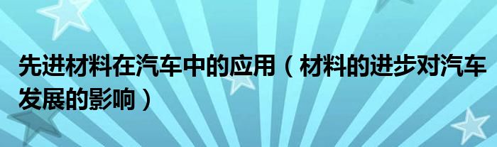 大家好,小太来为大家解答以上的问题先进材料在汽车中的应用,材料的进步对汽车发展的影响这个很多人还不知道,现在让我们一起来看看吧!