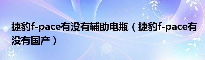 大家好,今天小太来为大家解答以上的问题捷豹f-pace有没有辅助电瓶,捷豹f-pace有没有国产这个很多人还不知道,现在让我们一起来看看吧!