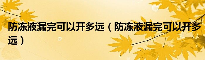 今日最新:大家好,小太来为大家解答以上的问题防冻液漏完可以开多远,防冻液漏完可以开多远这个很多人还不知道,现在让我们一起来看看吧!