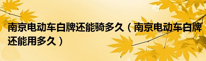 今日最新:大家好,小太来为大家解答以上的问题南京电动车白牌还能骑多久,南京电动车白牌还能用多久这个很多人还不知道,现在让我们一起来看看吧!