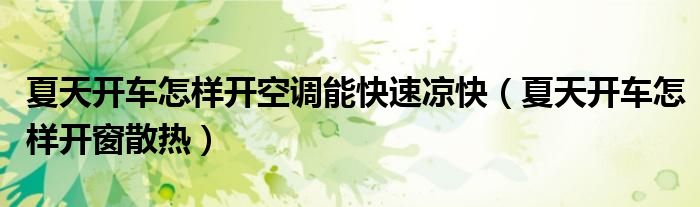 今日最新:大家好,小太来为大家解答以上的问题夏天开车怎样开空调能快速凉快,夏天开车怎样开窗散热这个很多人还不知道,现在让我们一起来看看吧!