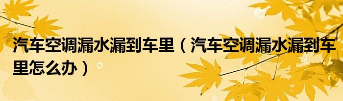 导读今日最新:大家好,小太来为大家解答以上的问题汽车空调漏水漏到车里,汽车空调漏水漏到车里怎么办这个很多人还不知道,现在让我们一起来看看