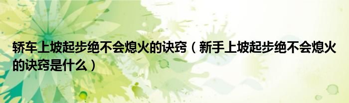 1、新手上坡起步绝不会熄火的诀窍:挂上一档就要给油,最好是把油门踩到1500—2000转,并且要稳住不动。