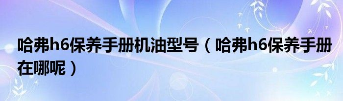 今日最新:大家好,小太来为大家解答以上的问题哈弗h6保养手册机油型号,哈弗h6保养手册在哪呢这个很多人还不知道,现在让我们一起来看看吧!