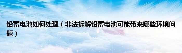 今日最新:大家好,小太来为大家解答以上的问题铅蓄电池如何处理,非法拆解铅蓄电池可能带来哪些环境问题这个很多人还不知道,现在让我们一起来看看吧!
