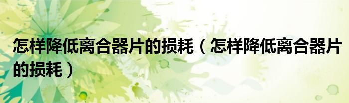 今日最新:大家好,小太来为大家解答以上的问题怎样降低离合器片的损耗,怎样降低离合器片的损耗这个很多人还不知道,现在让我们一起来看看吧!