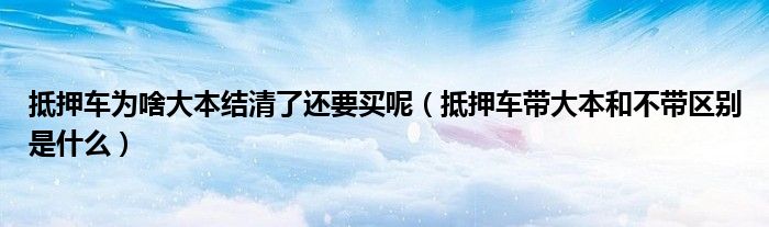 今日最新:大家好,小太来为大家解答以上的问题抵押车为啥大本结清了还要买呢,抵押车带大本和不带区别是什么这个很多人还不知道,现在让我们一起来看看吧!