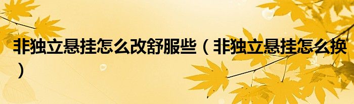 今日最新:大家好,小太来为大家解答以上的问题非独立悬挂怎么改舒服些,非独立悬挂怎么换这个很多人还不知道,现在让我们一起来看看吧!